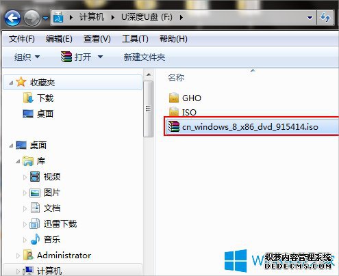 1、首先,将已经下载好的原版Win8系统镜像文件存放在U盘启动盘的目录中。