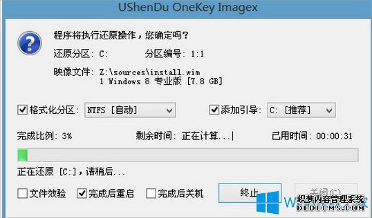 5、系统安装工具会将原版Win8系统镜像包释放到所选择的分区当中。