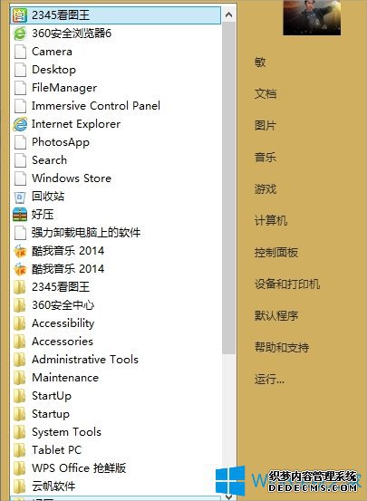 3、点击“注销”重启电脑我们会发现,开始菜单已经发生改变了,是不是找回了Win7/WinXP的感觉了。如果想切换回Win8的话直接卸载掉Win8优化大师软件。